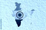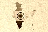 India map shape india flag created with natural flowers, india map decorated with natural flowers, tri colour flag on white and wood background. August 15 India independence day.