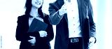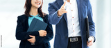 オフィスを並んで歩く男女2人の日本人ビジネスマン