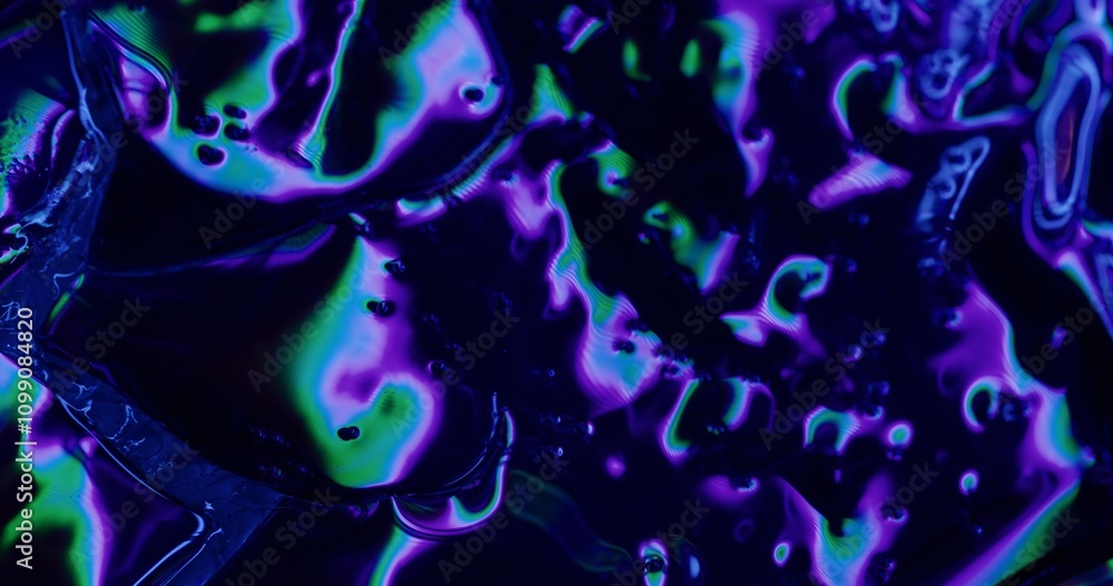 Blue foil. Color variation. Imaginary reflections deformed surface. Fluctuating dispersion flow light spectrum fiction psychedelic wavy gradient.