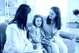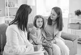 Child psychologist and mother parent kind care, professional comforting teen boy, giving sympathy, advice, giving emotional social support, mentor teacher, social worker during kind personal talk