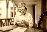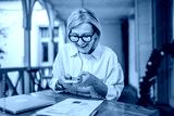 mature woman have contact less payment scan bill on mobile phone