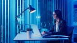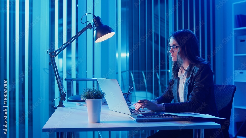 A Young Woman Office Worker Sits in the Evening Office, Working Late and Struggling with Professional Burnout and Office Fatigue Highlights the Need for Recovery Resources and the Strain of Long Hours