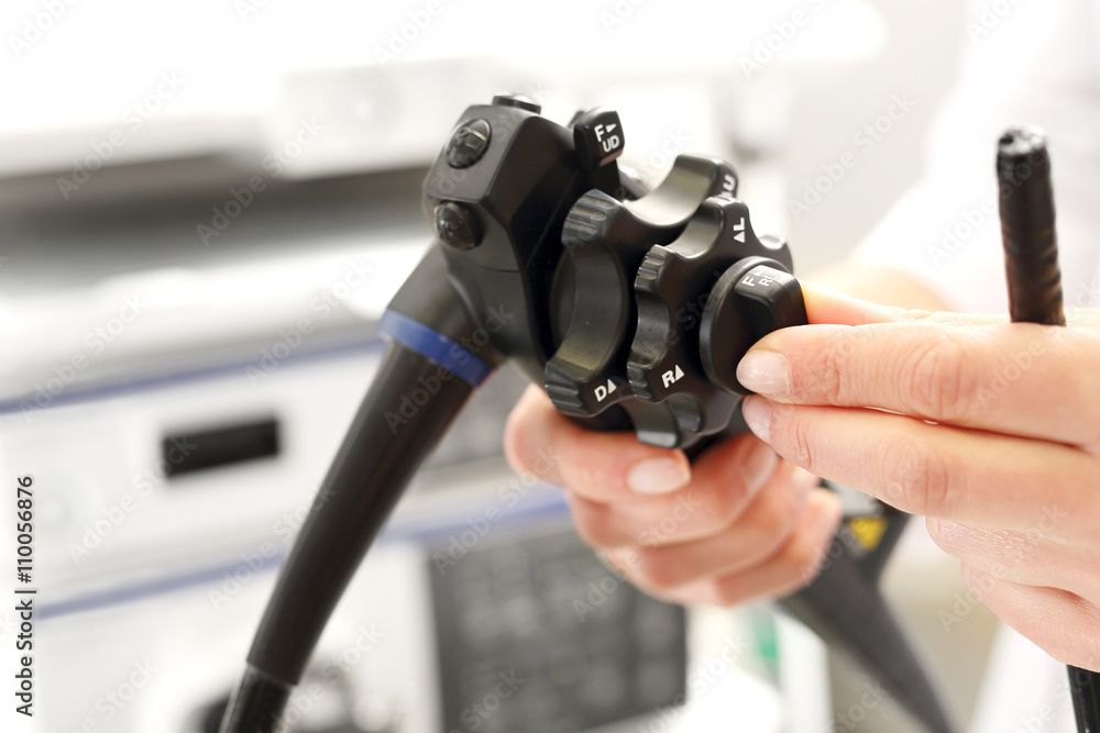 Lekarz gastrolog z sondą do wykonywania gastroskopii i kolonoskopii