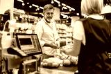 Senior man buying groceries at checkout counter in supermarket
