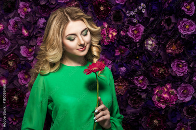 Beautiful Spa model Girl with Perfect Fresh Clean Skin. woman holding a flower gerber . Youth and Skin Care Concept.
