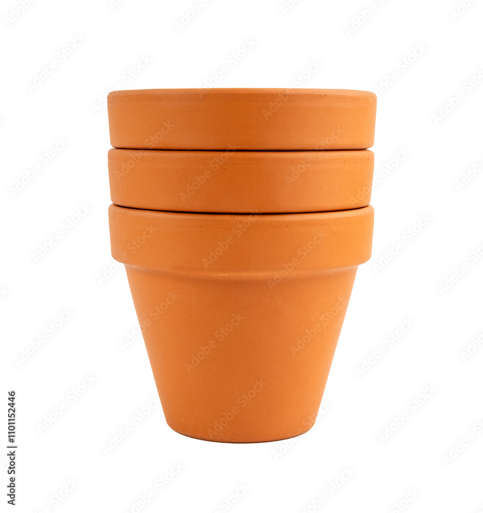 Empty terracotta flower pots, clay garden vase, brown ceramic plant container, terra cotta flowerpot, garden pottery earthenware on white background