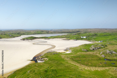 Uig Sands aka Traigh Uuige, Uig Bay, Lewis, Outer Hebrides. Looking north west from near Dun Borranish. Aerial