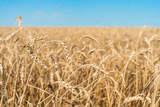 Golden ears of wheat, beautiful agro natural background. Growth nature harvest. Wheat field natural product.
