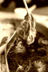 Raw beef slices ready to be placed into a hot pot. Japanese food sukiyaki buffet