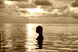 Female going for a swim at sunset.