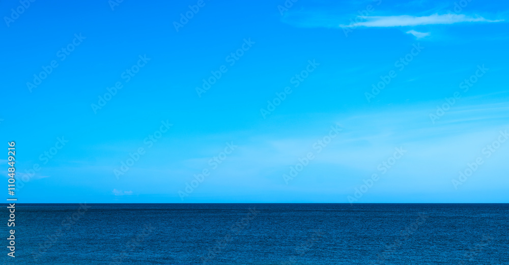 Nature of the beach and sea Summer with sunshine, sandy beaches, clear blue waters sparkling against the blue sky. On an island with good ecology and environment Background for summer vacation concept