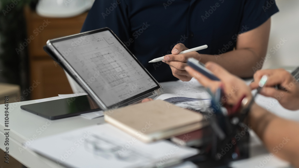 Architect working on the desk, construction project ideas architecture engineer Concept