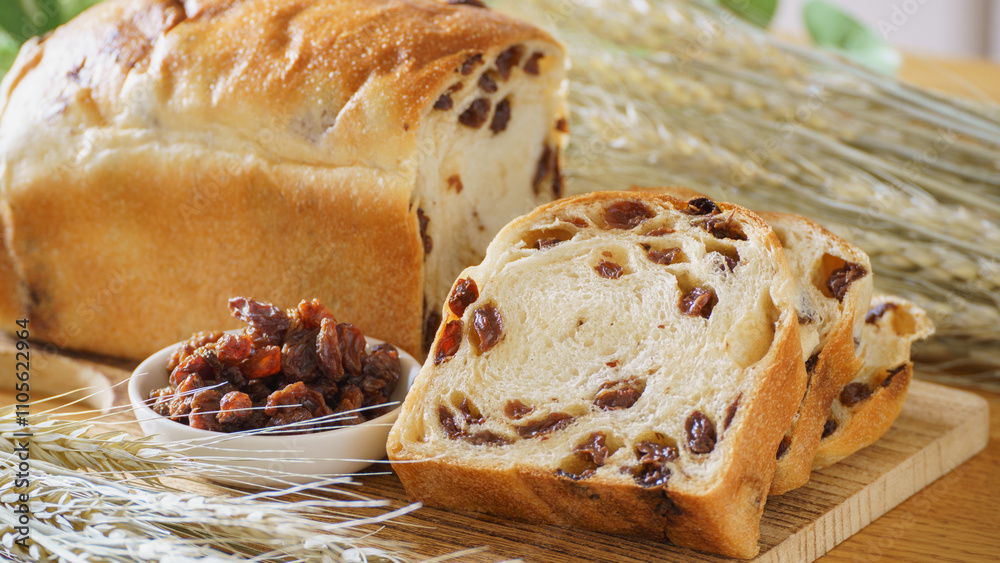 レーズンパン・イメージ|レーズンパンとレーズンと麦穂