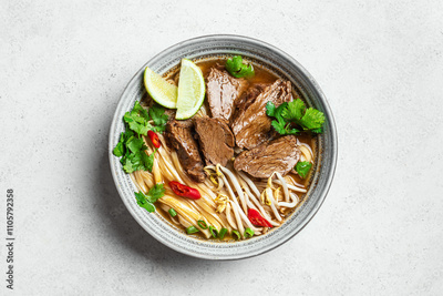 Pho Bo Vietnamese soup with rice noodle and beef