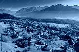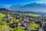The Village of Schnifis in the Walgau Valley, looking to the Rhätikon Mountains with the Zimba, State of Vorarlberg, Austria. Drone Photography