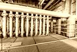 Industrial pipeline equipment scene in the old steel mill
