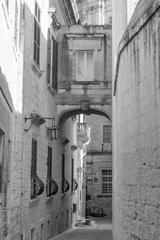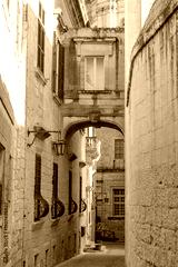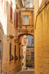 Arch window over ancient narrow street of Mdina, old capital of Malta