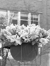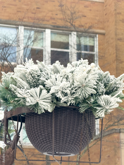 Decorative holiday greenery covered in frost