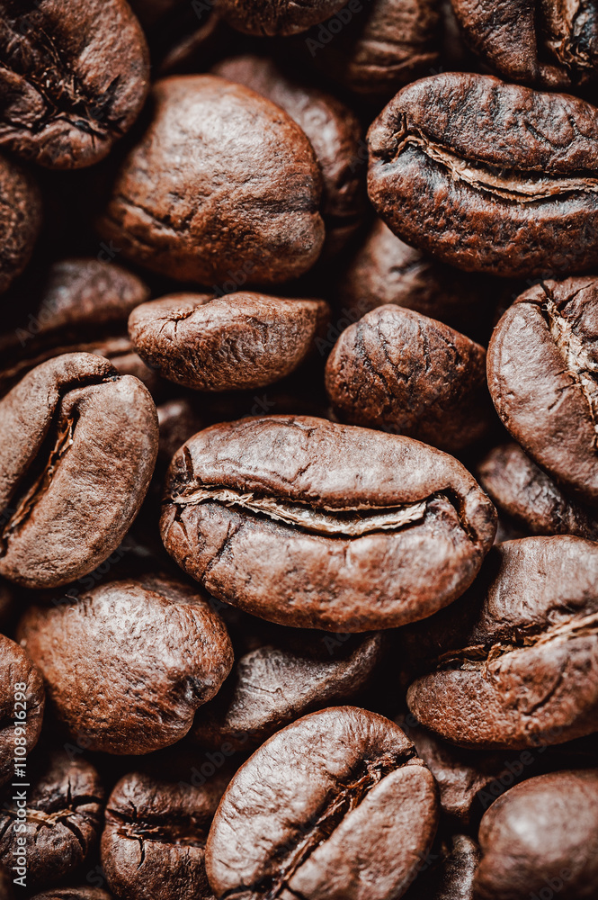 A close-up view of dark roasted coffee beans, showcasing their rich texture and glossy surface. Ideal for coffee-related themes, recipes, or branding in the beverage industry.
