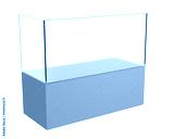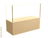 Empty minimalist display case with clear glass top and grey base for art expensive item exhibitions, product presentation, retail showcasing, simple terrarium or aquarium on isolated white background