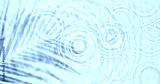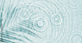 palm leaf shadow and drop circles with sunlight reflections on transparent water surface from above, water texture background concept with copy space for wellness, body and beauty care or travel