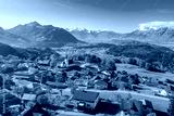 The village of Übersaxen above the Rhine Valley in the State of Vorarlberg, Austria, Drone Photography