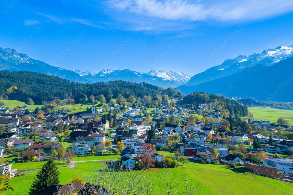 The village of Satteins in the Walgau Valley, State of Vorarlberg, Austria, Drone Photography