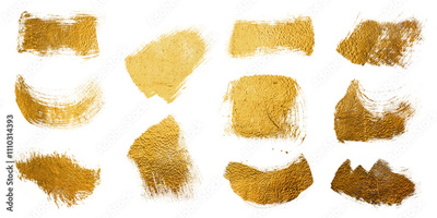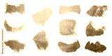 Gold Foil Watercolor Texture Paint Stain Abstract Illustration. Shining Brush Stroke Set for you Amazing Design Project. Isolated on White Background