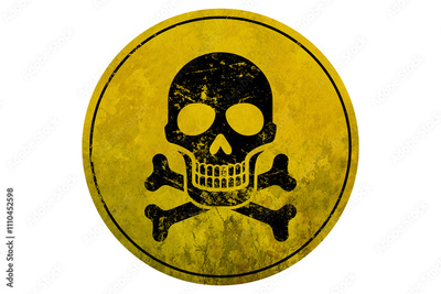 Set of signs warning of the danger of high voltage with a skull on yellow danger warning sign.
