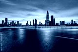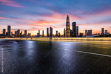 Asphalt highway road with modern city buildings scenery at night in Shenzhen, China. Outdoor city background.