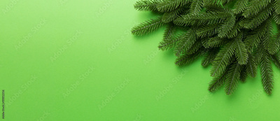 Christmas holiday background with copy space for advertising text. Fir branches on color background . Flat lay, top view