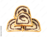 Poppy Seed Swiss Roll, Round Sponge Cake Isolated, Sliced Rolled Vanilla Biscuit with Poppy Seeds Filling
