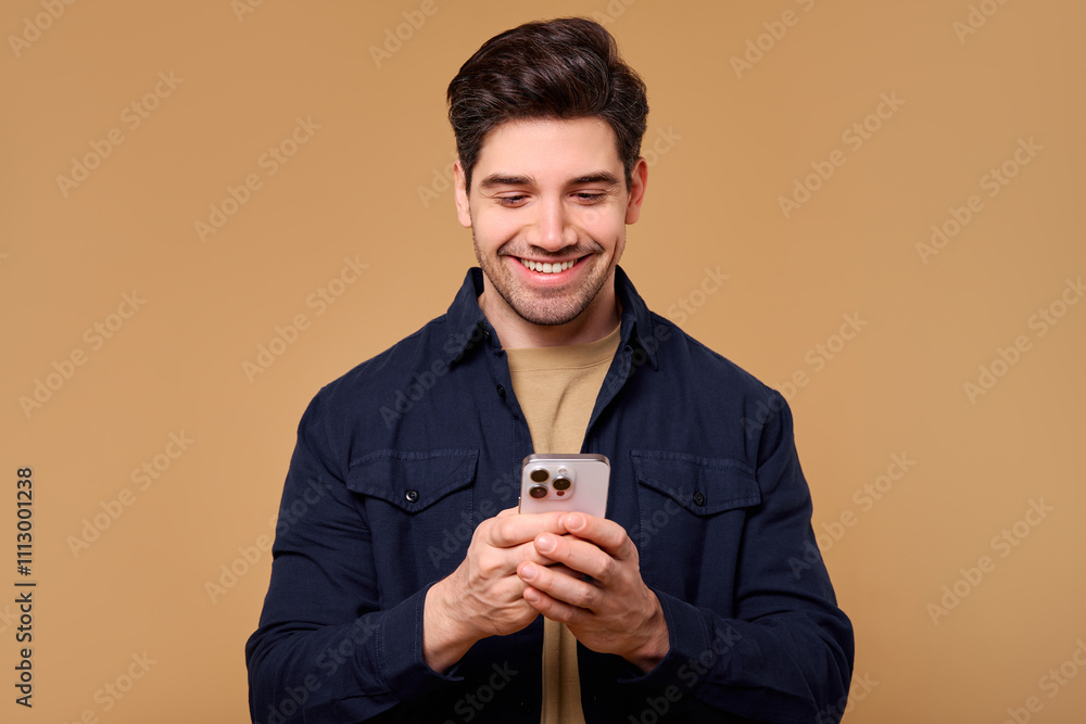 An Excited Young Man Happily Reacting to Content on His Smartphone Device with Enthusiasm