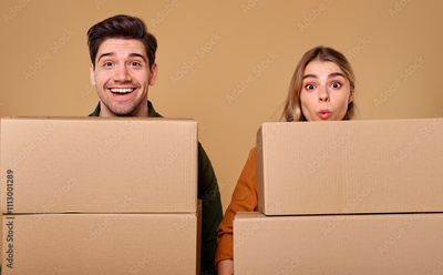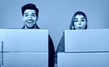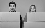 A Joyful Couple Surrounded by Numerous Moving Boxes, Ready for Their Next Big Adventure