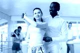 Men and women of different nationalities dancing salsa o bachata in the dance hall