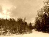 winter forest road in the snow