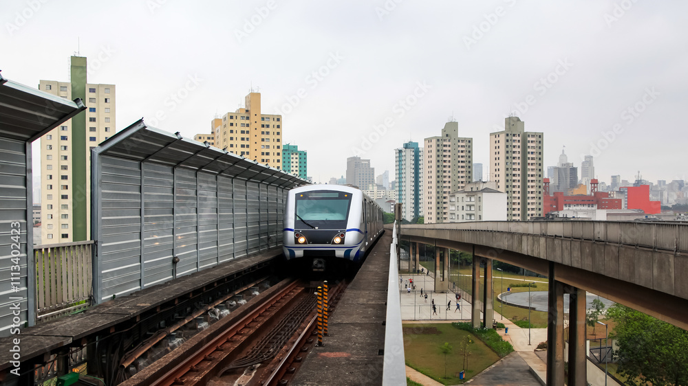 Front view of the train at the subway metro station in Sao Paulo, Brazil.