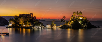 Ruins on a small island near the resort of Parga, Greece-night photography