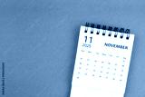 November 2025 Mini monthly desk calendar for 2025 year on blue color background.