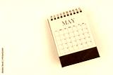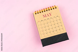 May 2025 desk calendar on pink color background, Position with copy space.