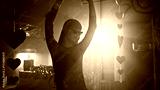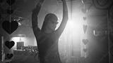 Asian woman dancing neon festive nightclub closeup. Happy dancer lost in music