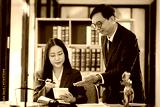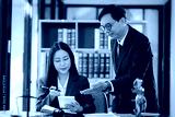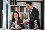 Consultation and conference of Male lawyers and professional businesswoman working and discussion having at law firm in office. Concepts of law, Judge