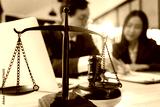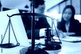 Lawyers discuss legal documents, explaining the terms of their consultation with a businesswoman before signing a contract with a law firm.