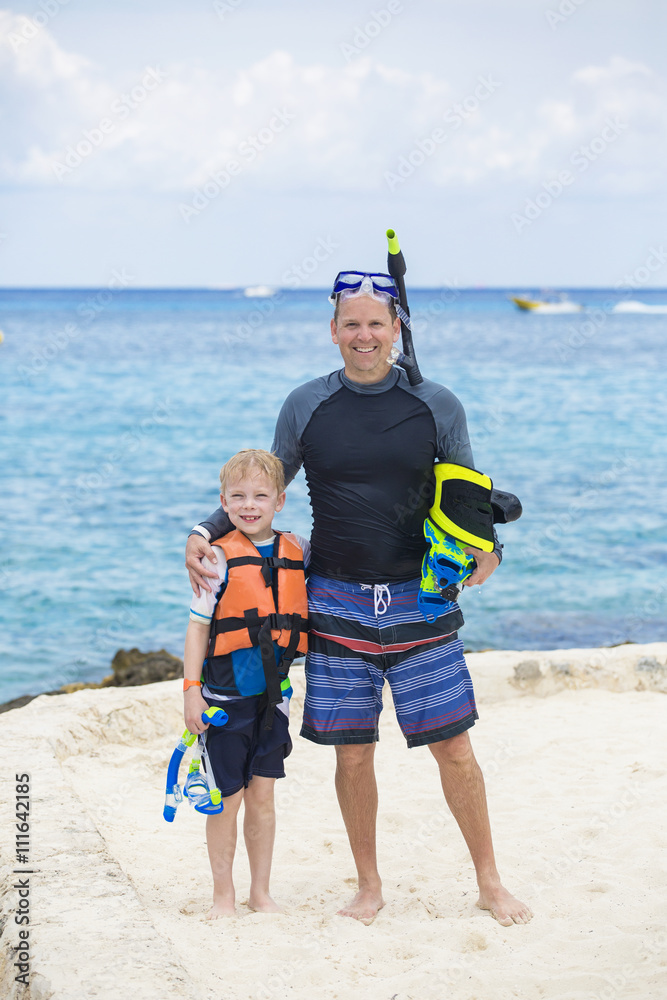 Young Family Snorkeling together in the Ocean at a tropical island resort