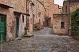 Sorano, Grosseto, Tuscany, Italy: narrow alley with ancient houses in the picturesque medieval village
