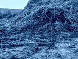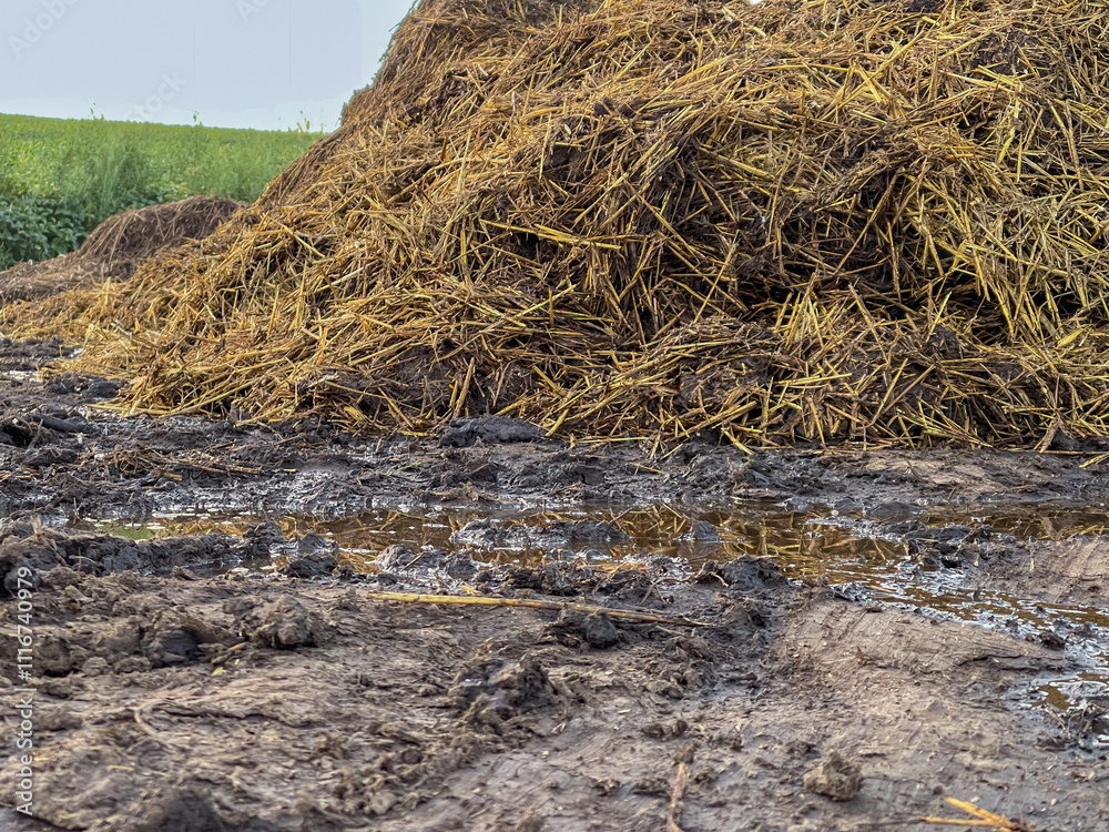 A pile of fresh manure on the field. manure just brought in