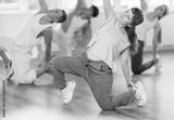 Girl in cap and loose clothes dances hip hop with friends during workout. Young people perform basic important elements in deep squat, as if they are doing push-ups, bending their whole body