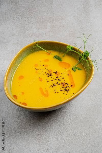 pumpkin cream soup on the table