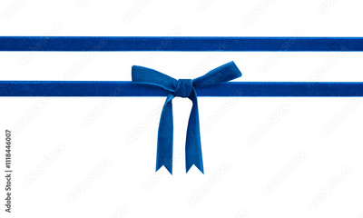 Blue velvet bow and ribbon isolated on white. Gift box decor, Christmas design element.
