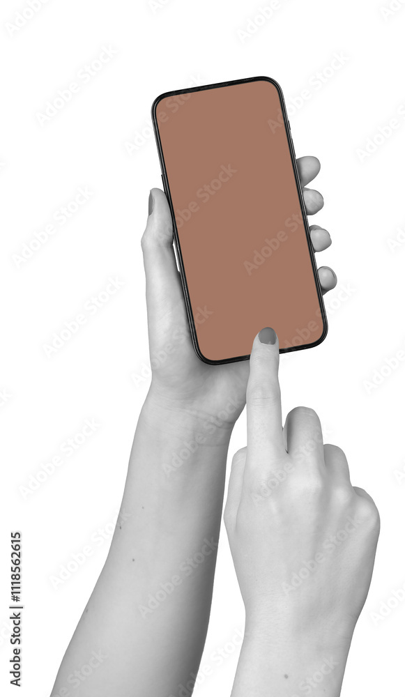 Mocha Mousse color on smartphone screen in hands isolated on white